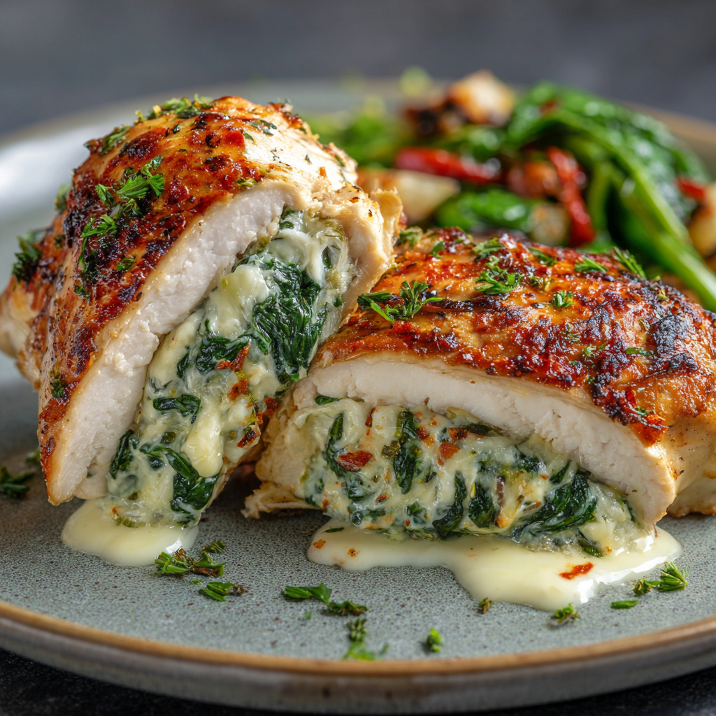 6. Air Fryer Stuffed Chicken with Spinach & Cheese