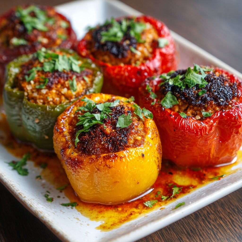 - Stuff peppers and air fry at 360°F for 10–12 minutes.